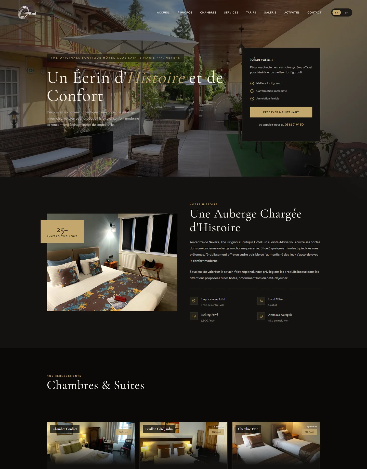 L’hôtel souhaitait moderniser complètement son image en ligne, gagner en autonomie sur la gestion du contenu, et proposer une expérience cohérente avec son positionnement haut de gamme.