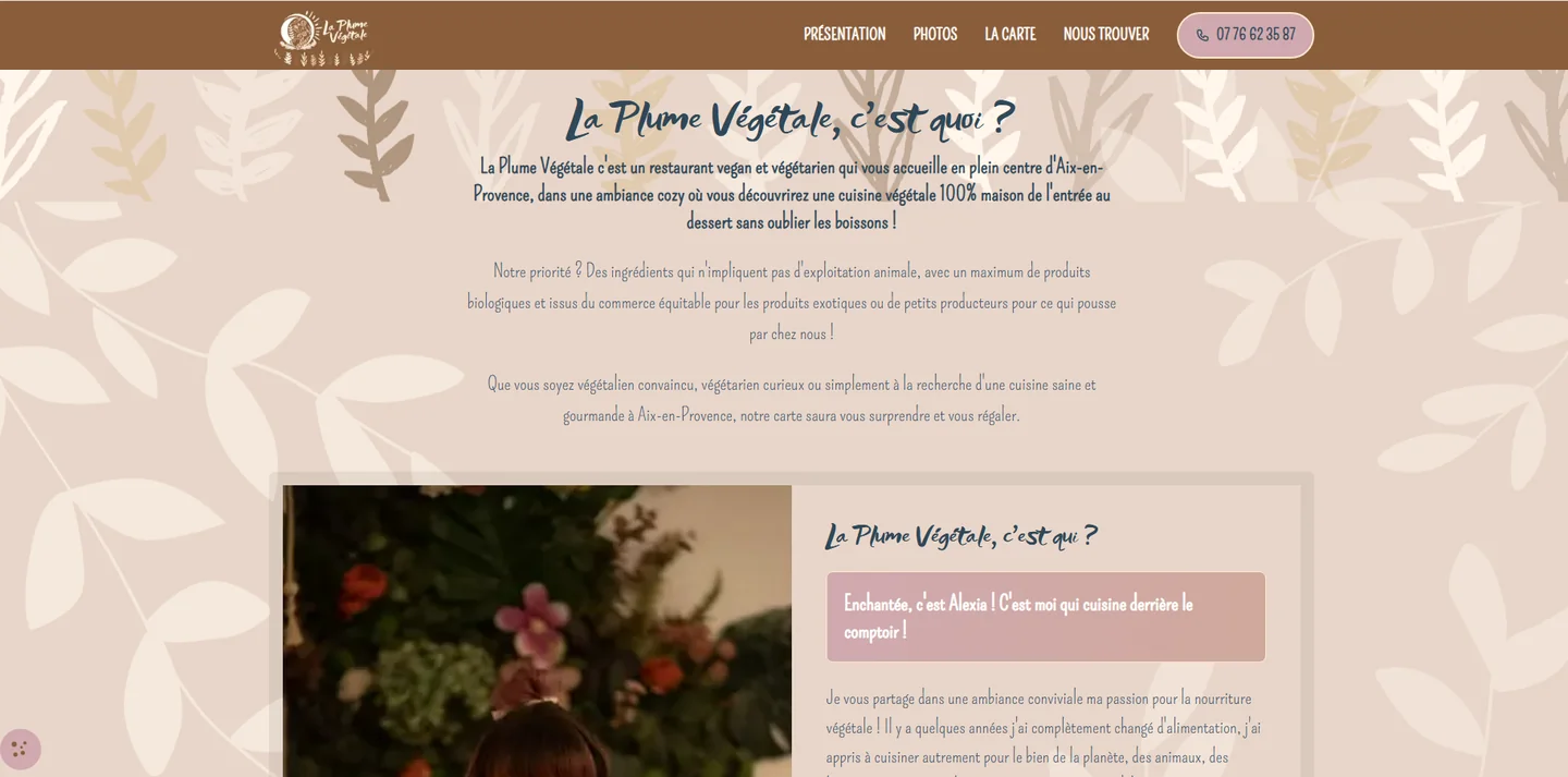 Alexia n’avait jamais envisagé de site internet pour son restaurant. Elle communiquait via Instagram, où elle partage depuis le début son quotidien, ses plats, son engagement végétal. Sa difficulté n’était pas technique ni budgétaire : c’était une question d’exigence créative. Convaincue qu’aucun prestataire ne saurait traduire fidèlement l’univers qu’elle avait construit, elle préférait rester sur ses réseaux sociaux plutôt que de confier son image à quelqu’un qu’elle redoutait de devoir corriger en permanence.